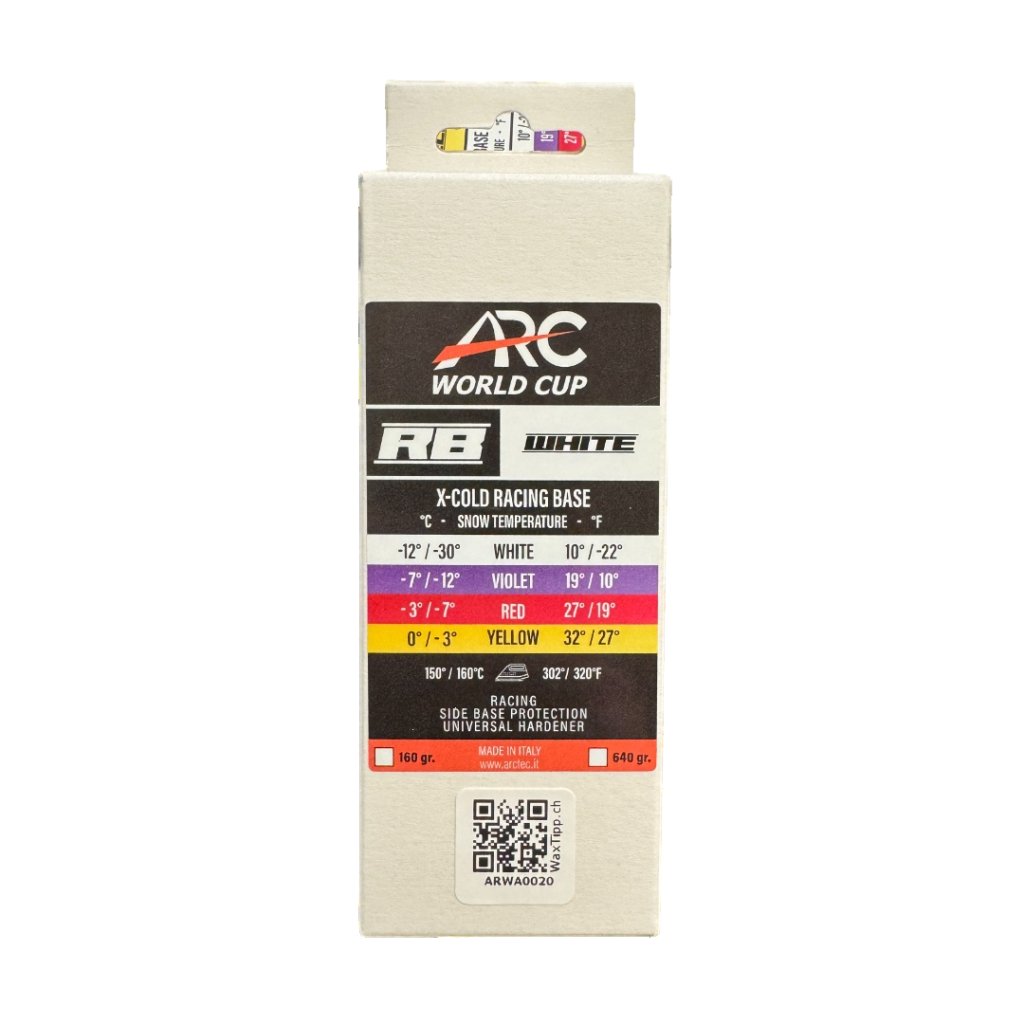 ARC RB WHITE X-Cold Racing Wax Solid is a high-performance racing glide wax designed for snow temperatures from -12 °C to -30 °C. The very hard formula is optimized for extremely cold, dry and abrasive snow conditions.