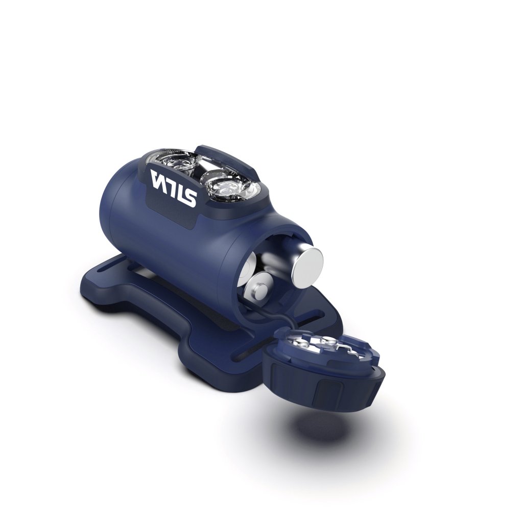 Compact, ultra-lightweight, waterproof headlamp with impact resistance and three colored LEDs. Standard white LED, red LED for discreet night vision, orange LED for discreet map reading at night. 3 light modes + SOS blinking mode. Great performance/value ratio. AAA batteries located in the headlamp body. Battery capacity indicator. Package includes a clip holder for various mounting options and a helmet mount.
