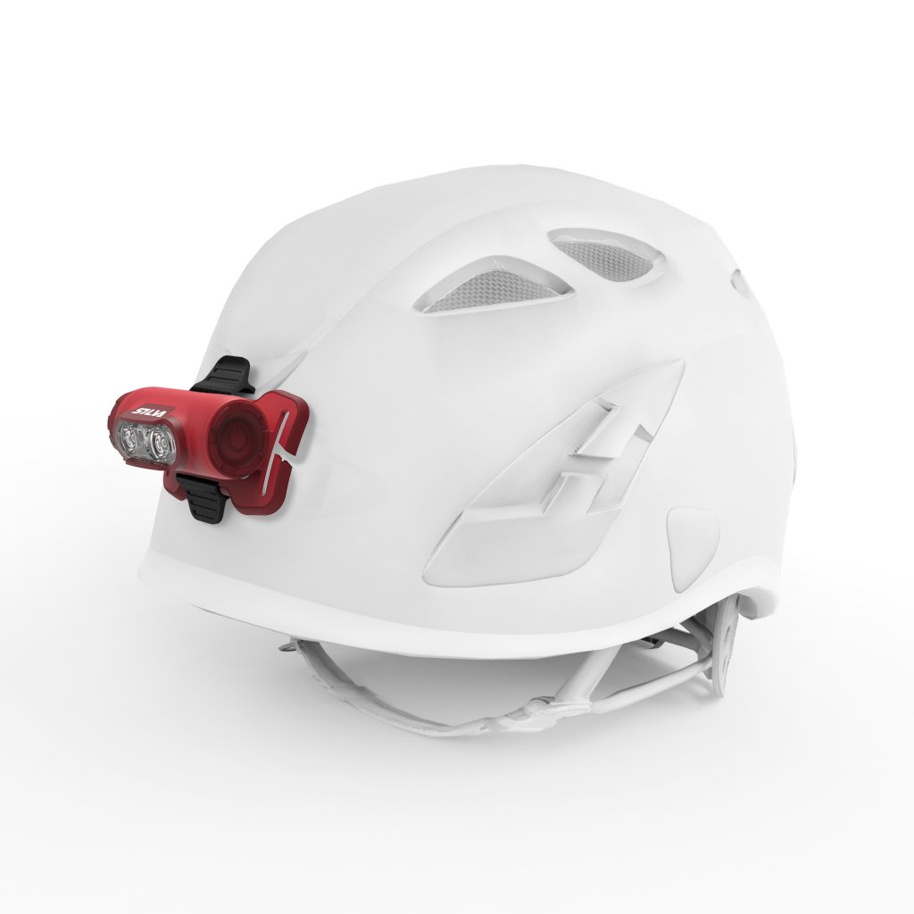 Compact ultra-lightweight waterproof headlamp with impact resistance and three colored LED lights. Standard white LED, red LED for non-intrusive night vision, orange LED for non-intrusive night map reading. 3 lighting modes + SOS flashing mode. Great performance/value ratio. AAA batteries located in the headlamp body. Battery capacity indicator. The package includes a clip holder for various mounting options and a helmet mount.