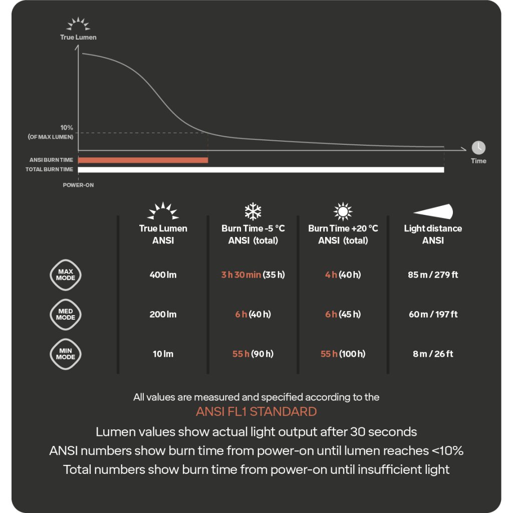 - Light time at 20°C: 40h (highest mode) / 100h (economy mode)