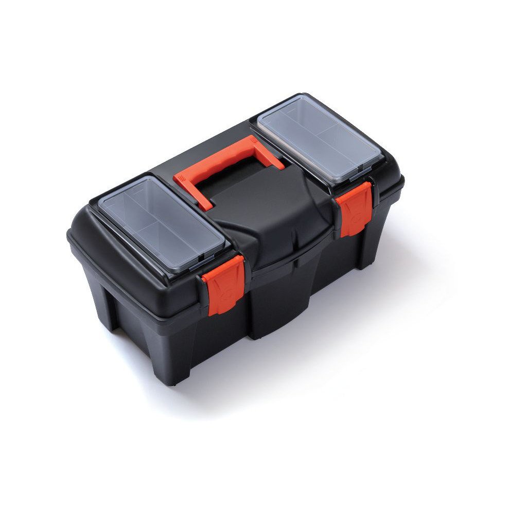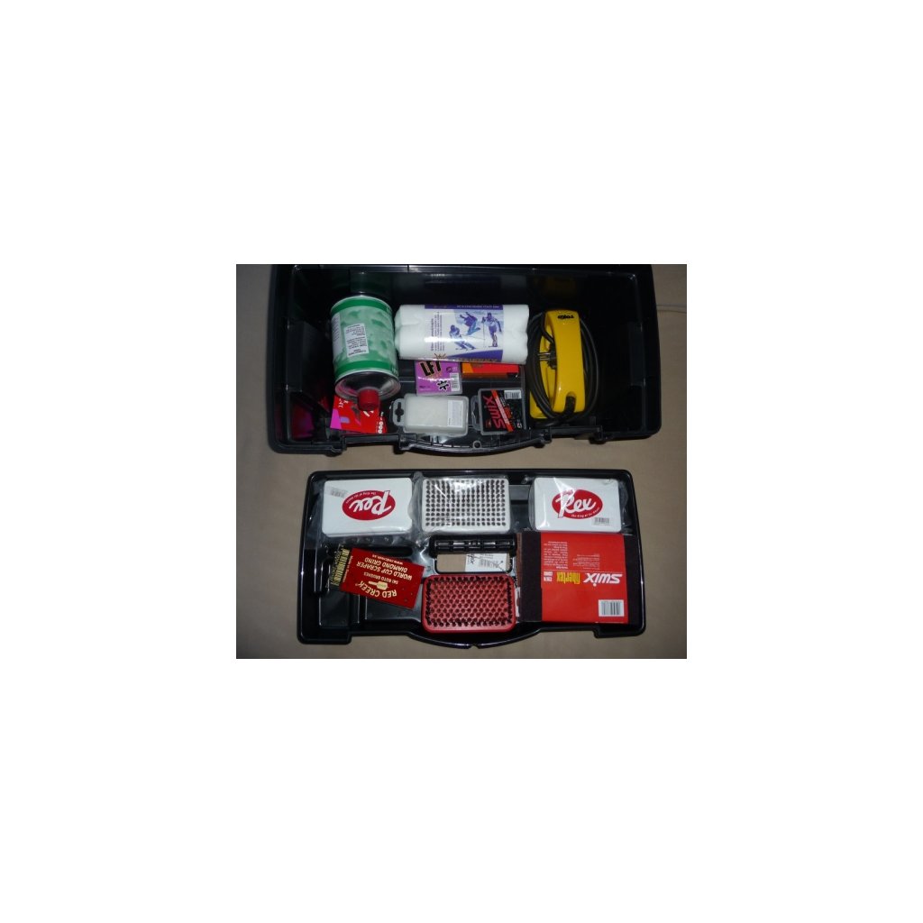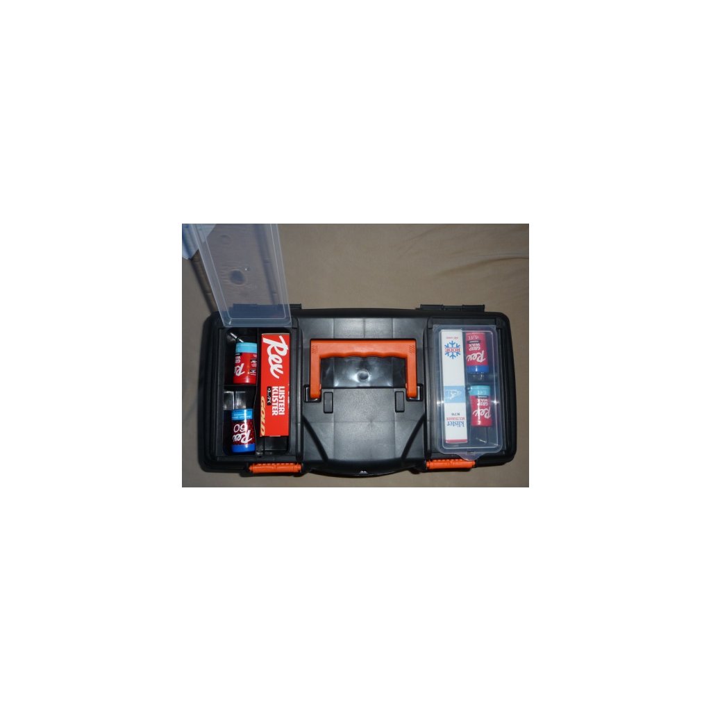 Universal plastic case with a carrier and transparent compartments. Suitable for storing service equipment and waxes. Size: 460 x 250 x 225mm (L x W x H)