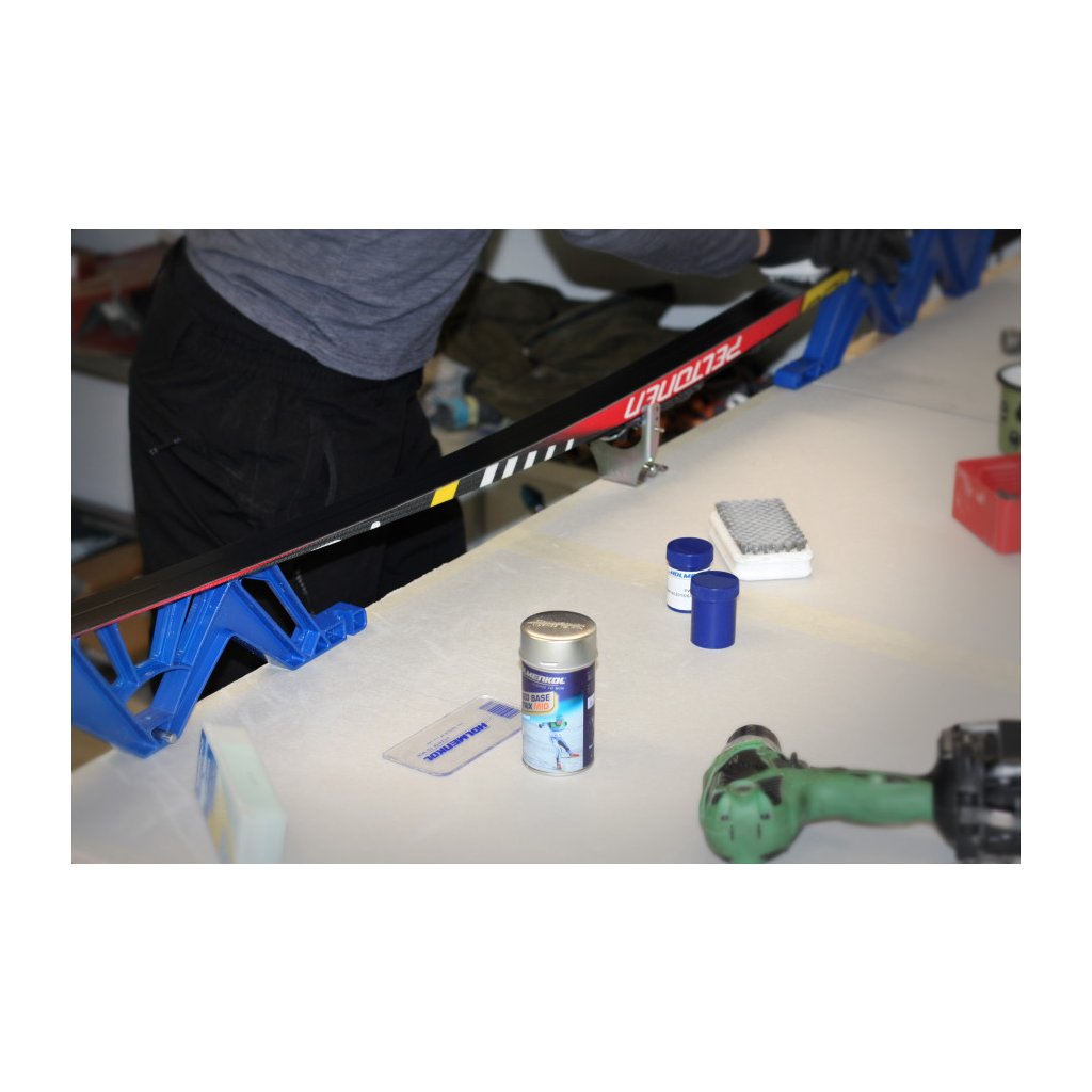 Lightweight and compact waxing profile for cross-country skis. The front and rear parts of the profiles, plus the binding fixation, are clamped to the workbench with clamps included in the package.