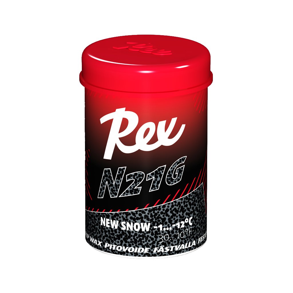 Wax for the same temperature conditions as blue, but specifically designed for new snow. Contains the same graphite additive used in Rex glide waxes for new snow. Antistatic and prevents snow accumulation/freezing.