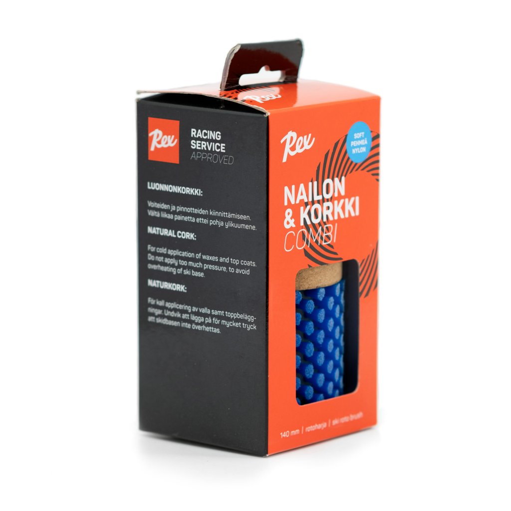 A true two-in-one tool for applying and polishing glide waxes. Use the cork for applying glide waxes (without a waxing iron), then finish by polishing the ski base with the soft nylon brush. Two brushes in one make your work easier and faster.