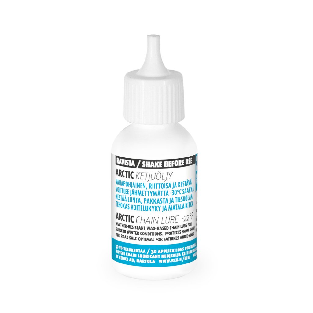The new Rex Arctic lubricant formula is based on the popular Rex Domestique chain lubricant. It is a wax and oil hybrid lubricant resistant to snow, frost, and road salt.