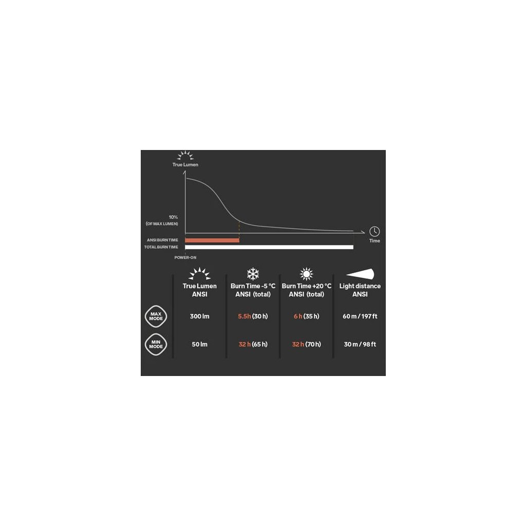 | 300 lm | 60 m | 6 h |