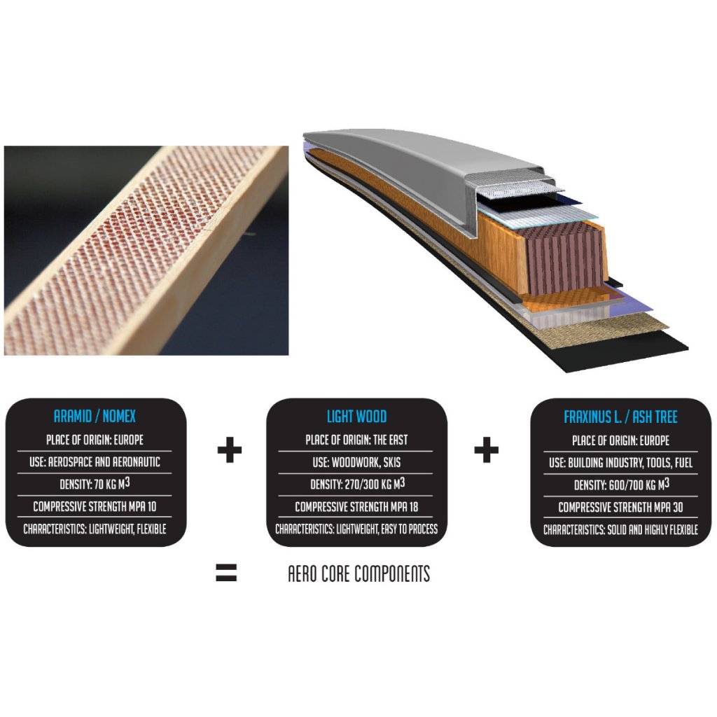 Aramid is among the significant synthetic fibers. It is used in aerospace and military applications due to its incredible properties. The aramid-honeycomb core represents the best strength-to-weight ratio available on the market today. SKI TRAB has chosen the best material for long-term high stability, performance, and durability of skis.
