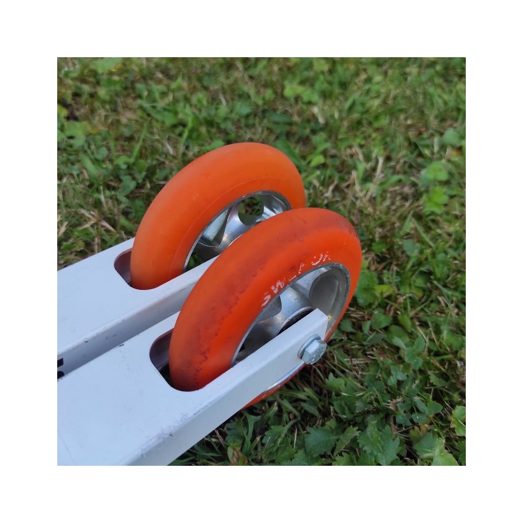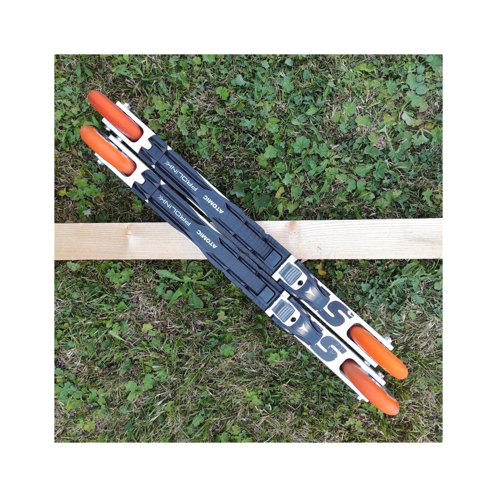 Norwegian racing roller skis with fast polyurethane wheels.
