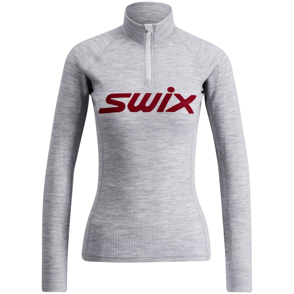 SWIX RaceX Merino Half Zip, women's long sleeve top, Light Grey Melange