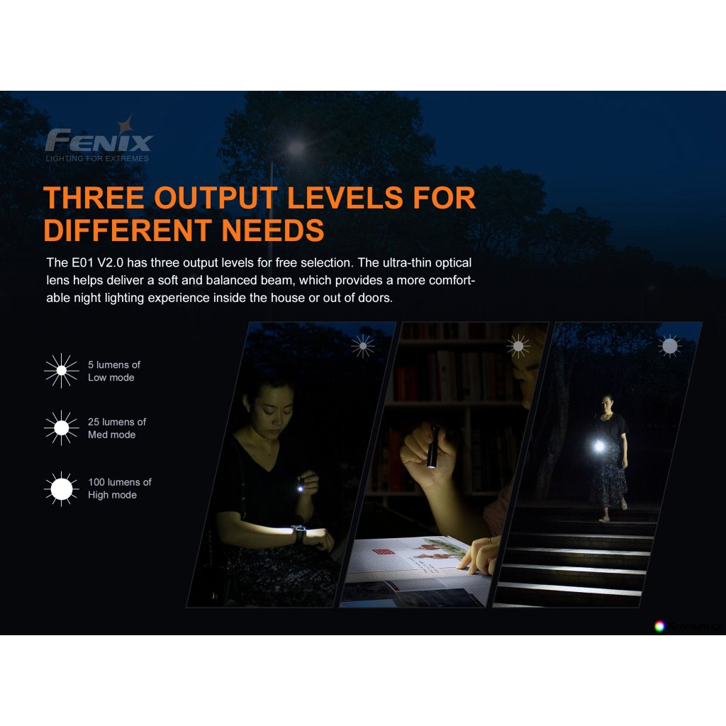 FENIX E01 V2.0 černá, 100lm / 35m, baterka