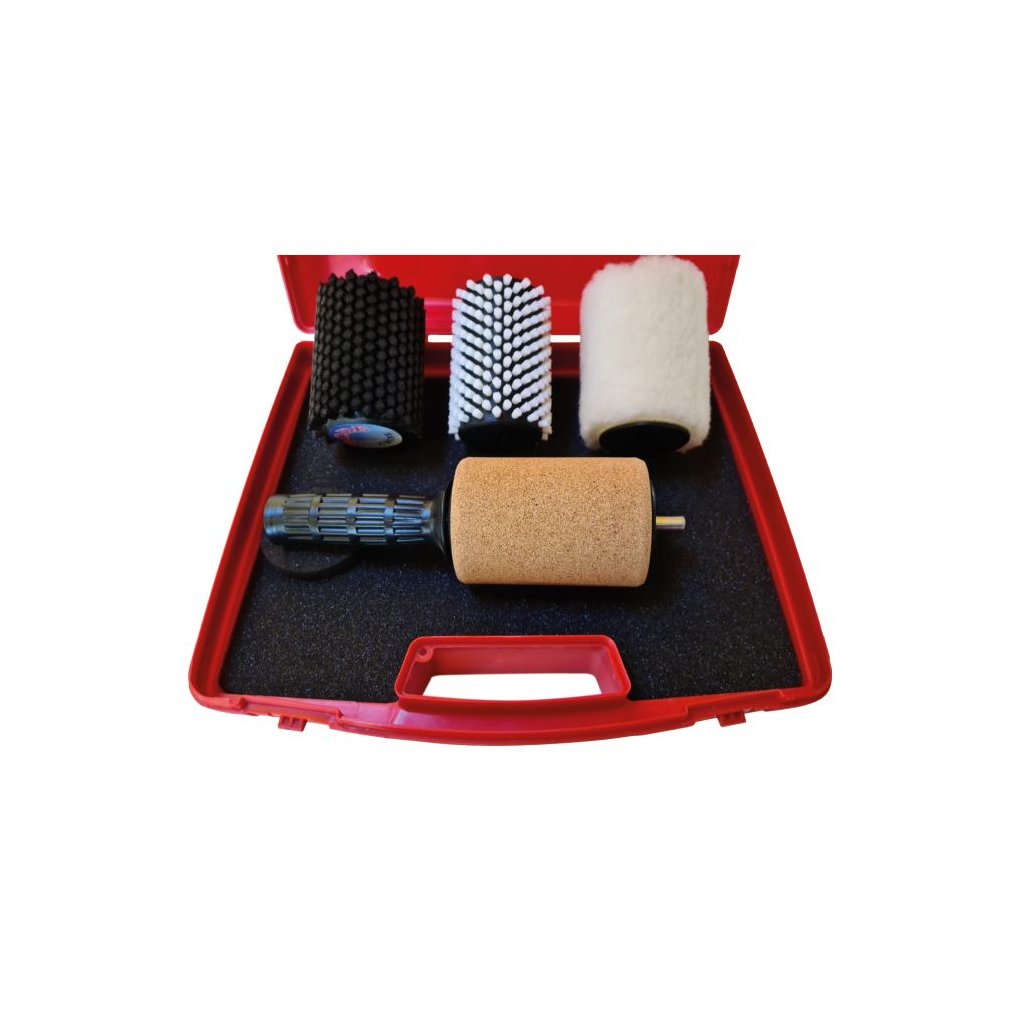 Sada 4 rotačních kartáčů 100mm na lyže v šikovném kufru.