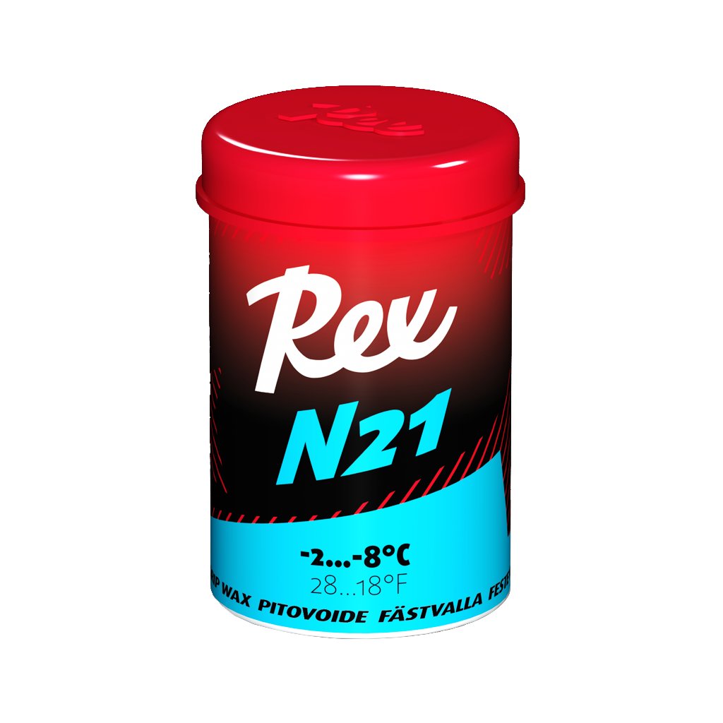 Niebieski wosk do nart biegowych na średnie mrozy. Rex N21 ma stosunkowo twardą konsystencję, ale dzięki materiałom i technologii Rex Dual Compound nadal zapewnia dobrą przyczepność. Może być używany samodzielnie, jako warstwa pośrednia lub jako wosk pokrywający.