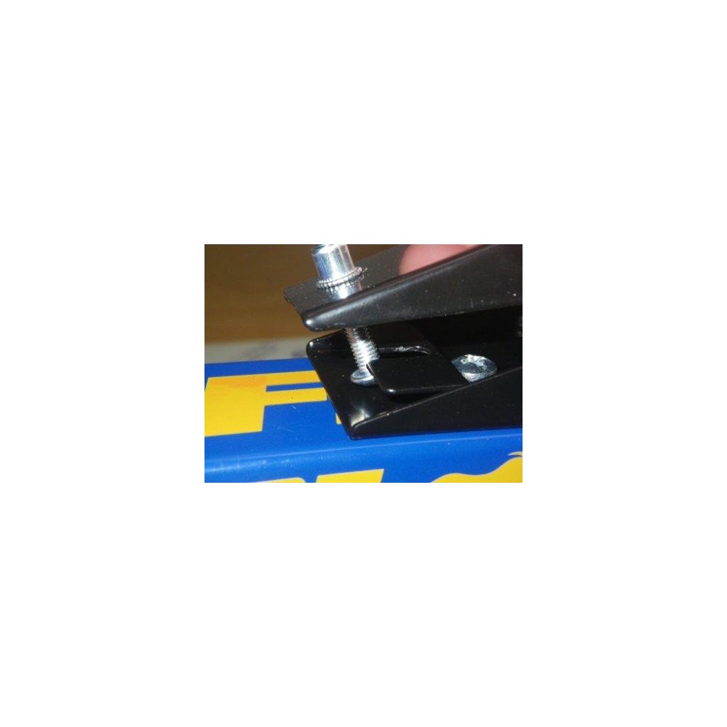Zasada hamowania: Za pomocą śruby tworzymy nacisk na przednie kółko przez mechanizm dźwigniowy. Nacisk powoduje tarcie między kółkiem narty a metalowym wałkiem, co zmniejsza prędkość.