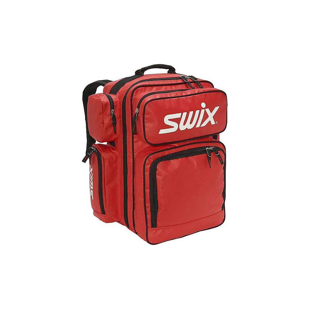 Swix Tech pack to plecak o pojemności 70l, wykonany z miękkiego materiału PVC odpornego na mróz, z sześcioma kieszeniami na zamek. Zawiera dużą izolowaną komorę i twarde antypoślizgowe dno. Dwa wzmocnienia w kształcie litery D na górze zapewniają dodatkową ochronę sprzętu. Jest kieszeń na wiertarkę z twardym dnem i górną częścią z klipsem. Większe zamki błyskawiczne umożliwiają łatwe otwieranie, a plecak posiada większe klamry i pasek na klatkę piersiową.