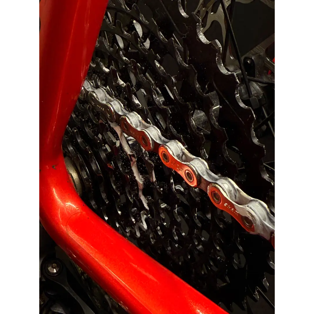- Ideálně aplikujte na zcela čistý a odmaštěný řetěz.