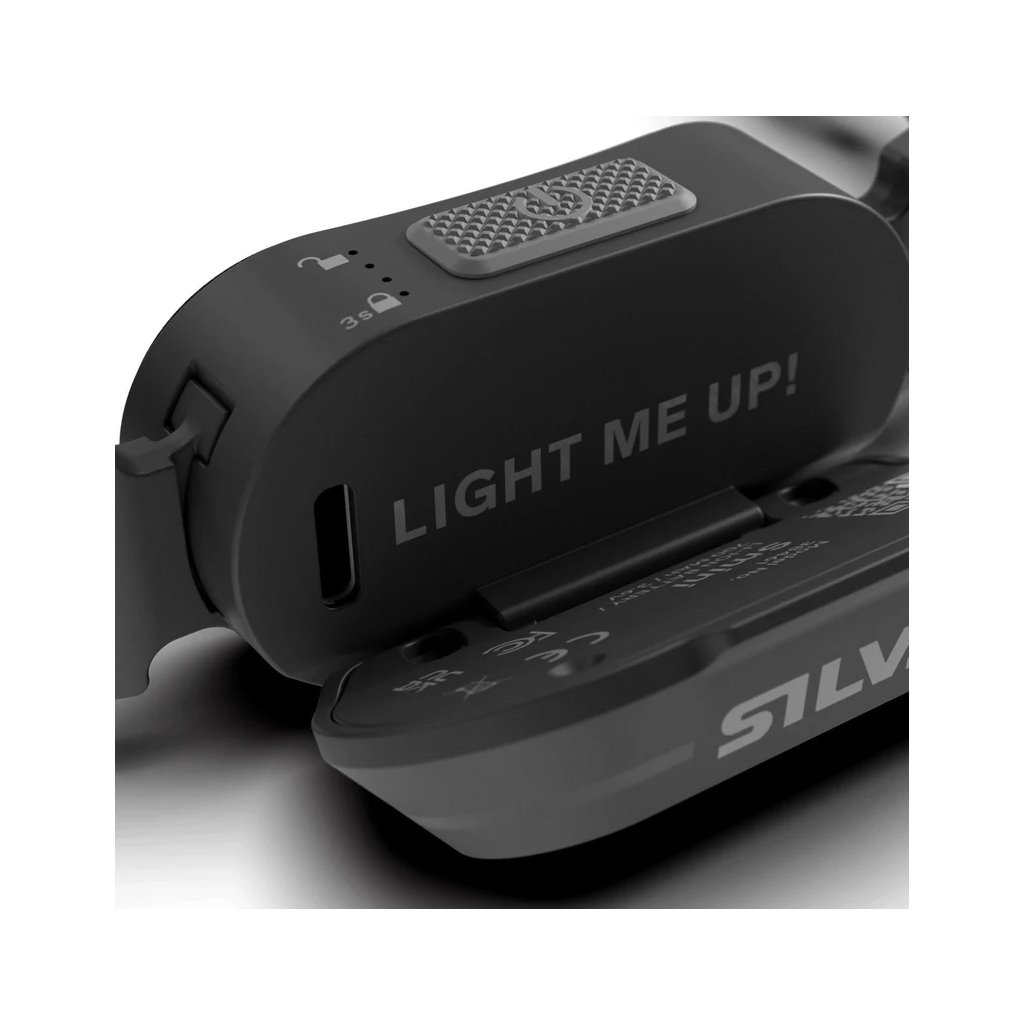 Tři intenzity bílých LED a jedna intenzita červené LED. Silva Intelligent Light – rovnoměrný rozptyl světla do dálky i do stran. Integrovaná Li-Ion 2,5Wh nabíjecí USB-C baterie.