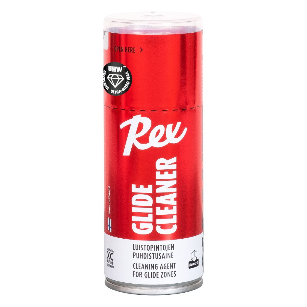 Po ošetrení zanecháva Rex Glide Cleaner na sklznici veľmi tvrdú a tenkú vrstvu klzného vosku tzv. UHW - Ultra Hard Wax, ktorý pôsobí ako vynikajúce pojivo pre tekuté aj tuhé tradičné parafíny. Pred začiatkom parafínovania vždy začnite s týmto čistiacim prostriedkom Rex Glide Cleaner. Priľnavosť a trvanlivosť následných vrstiev voskov bude podstatne lepšia. Samostatne dobre funguje na špinavom a umelom snehu, ktorý sa zvyčajne nachádza v lyžiarskych tuneloch a strediskách.