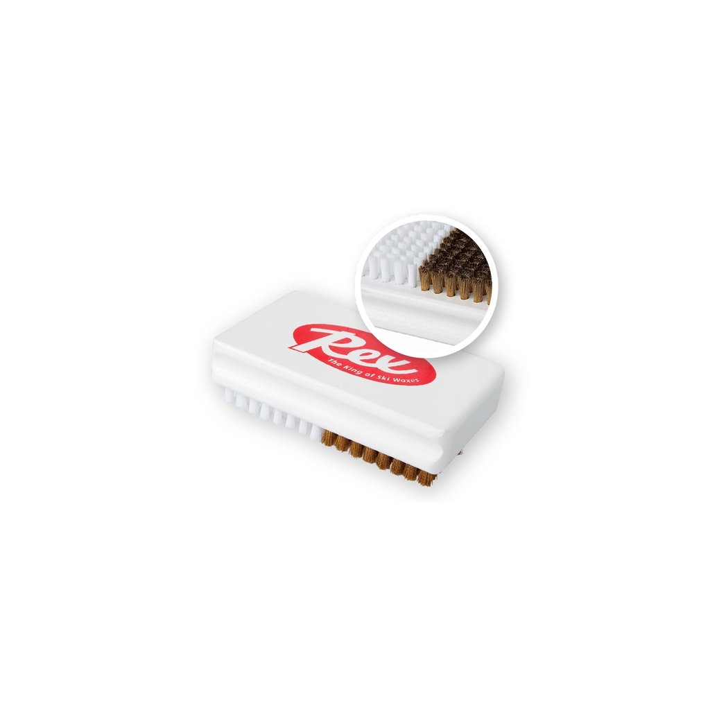 Kombinovaný mosadzný a nylonový viacúčelový kartáč Rex určený na odstraňovanie voskov zo štruktúry sklznice lyží.