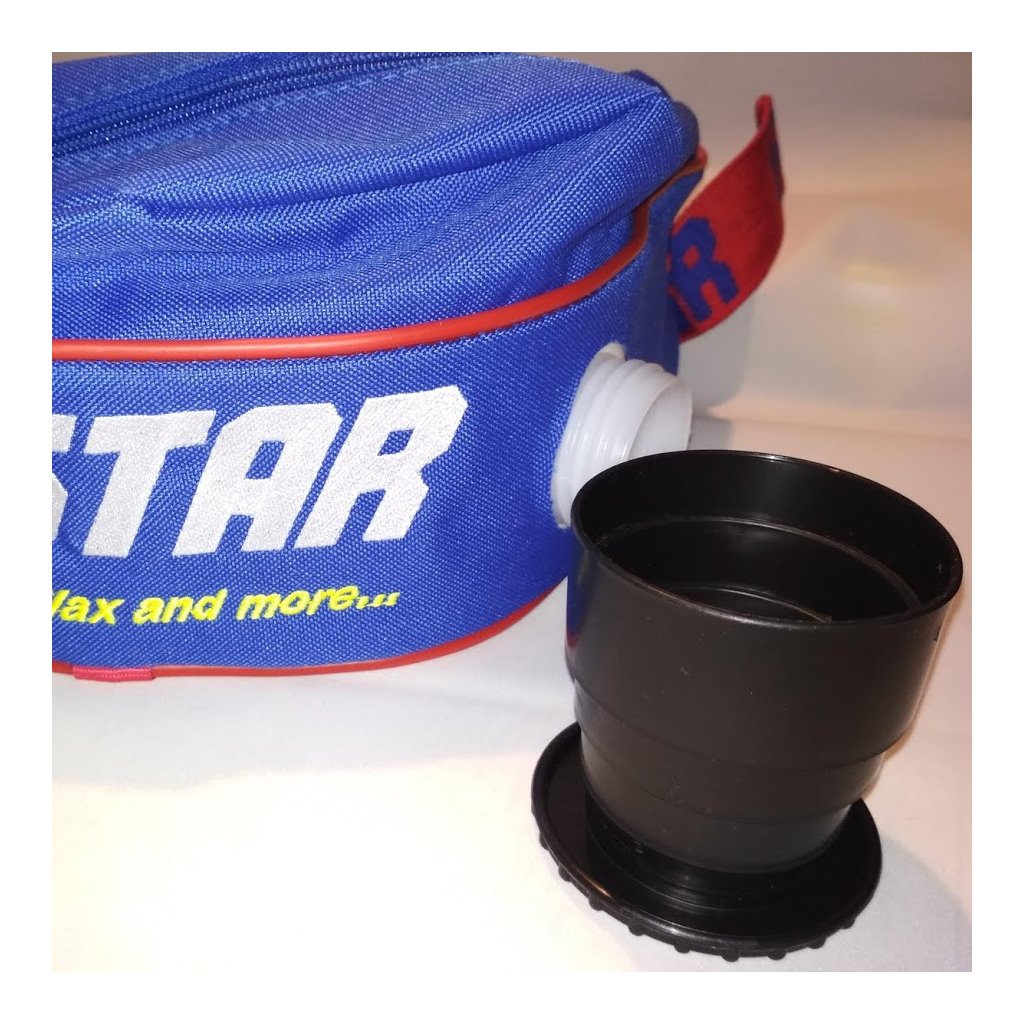 Ledvinka s tepelně izolovanou nádrží do které se vejde něco málo přes 1l tekutiny. Má vrchní kapsu na zip cca 1 litr (vosky, energetické tyčinky, mobil). Uzávěr ledvinky lze rozložit do kelímku.